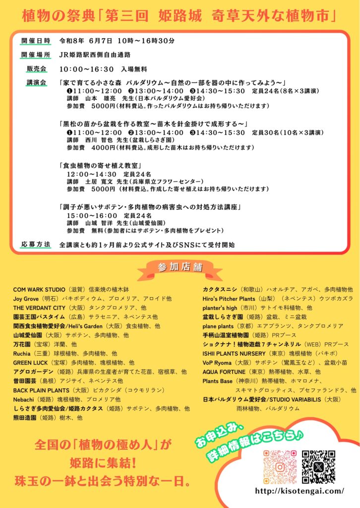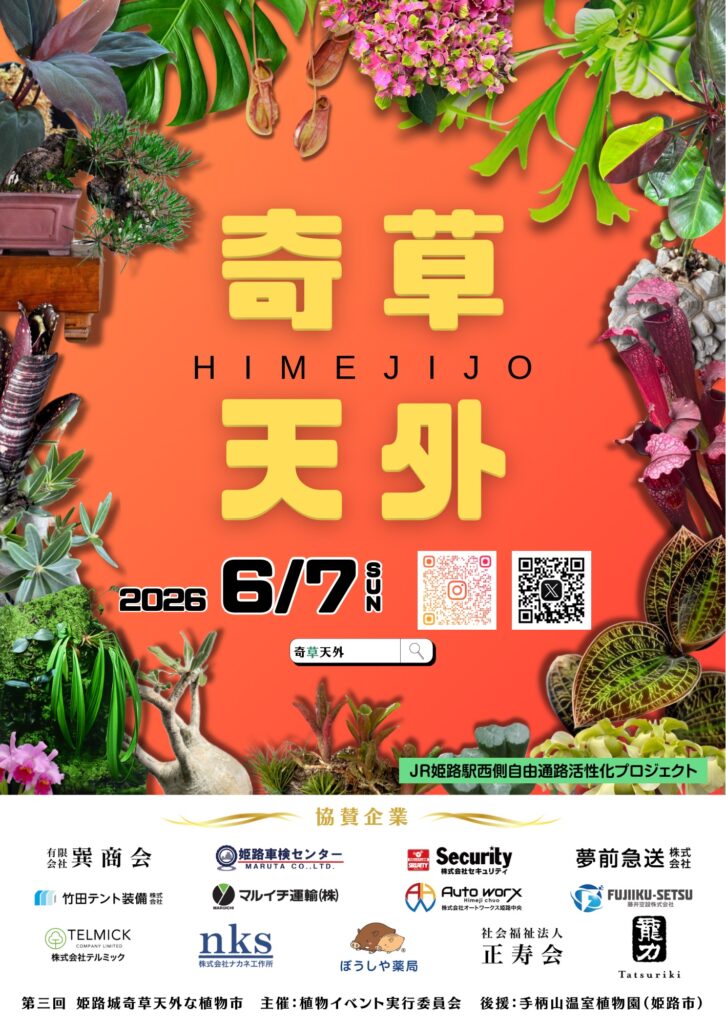 2026年4月7日 / 最終更新日時 : 2026年4月7日 Orion 最新記事 「第三回 姫路城 奇草天外な植物市」のチラシ公開(データをダウンロードできます) 2026年6月7日開催、「第三回 姫路城 奇草天外な植物市」のチラシが出来ました! ↓ダウンロードはこちら 奇草天外B5チラシダウンロード